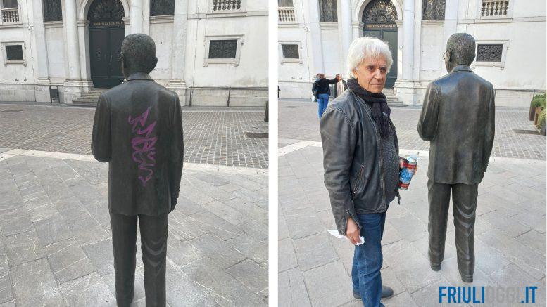 Dopo il brutto episodio di vandalismo avvenuto questa notte poche ore dopo l’inaugurazione, la statua di Carlo Sgorlon è stata ripulita in tempo record. Tempestivo l’intervento dell’artista Calogero Condello che ha riportato alla bellezza originale uno dei nuovi simboli di Udine.