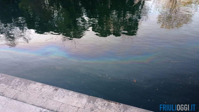 La chiazza oleosa è stata segnalata da un passante all’altezza del ponte di ferro, proveniente da un canale minore le cui acque poi confluiscono nell’Ausa (potrebbe trattarsi della roggia Fredda Piccola, detta “La Freda”).