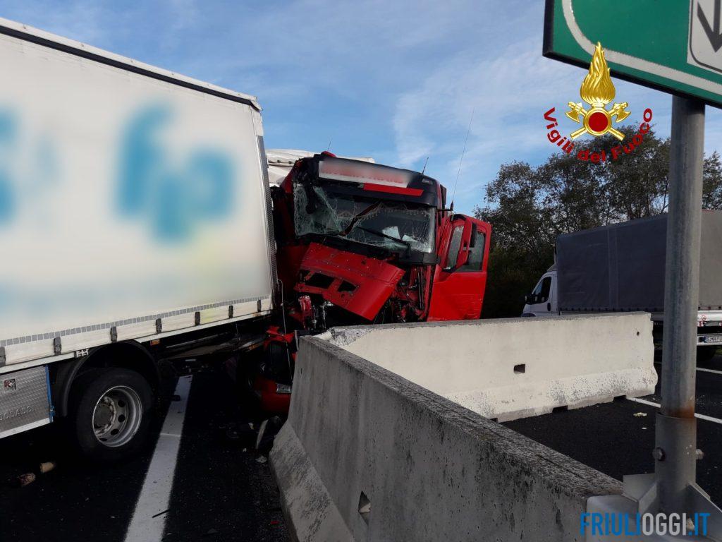 Il ferito è stato stabilizzato dai sanitari del Suem e trasferito in ospedale, come anche l’altro autista. Sul posto il personale di Autovie Venete e la polstrada. Durante le operazioni di soccorso l’autostrada è rimasta chiusa. Le operazioni dei vigili del fuoco sono in fase di completamento.