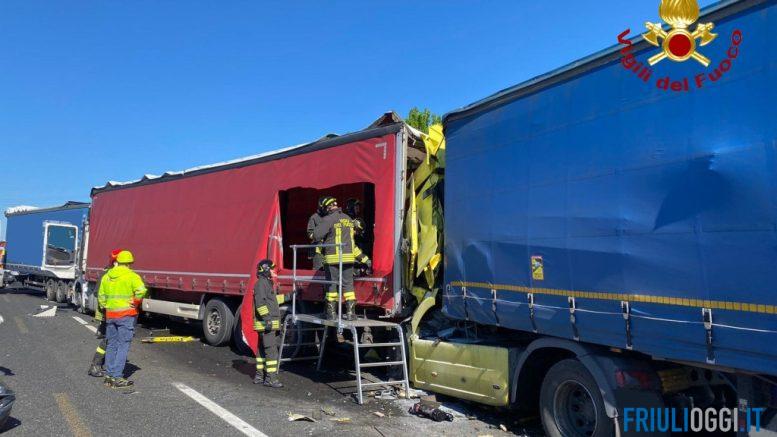 Uno scontro violentissimo quello avvenuto questa mattina intorno tra 3 mezzi pesanti sulla corsia in direzione Venezia dell’autostrada A4 nel tratto tra i caselli di Redipuglia e Villesse e nella quale ha perso la vita un camionista.