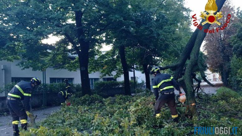 La notte di maltempo ha colpito il Friuli Venezia Giulia, con temporali intensi e forti raffiche di vento, ha provocato anche la caduta di un grosso albero sulla strada a Sesto al Reghena.