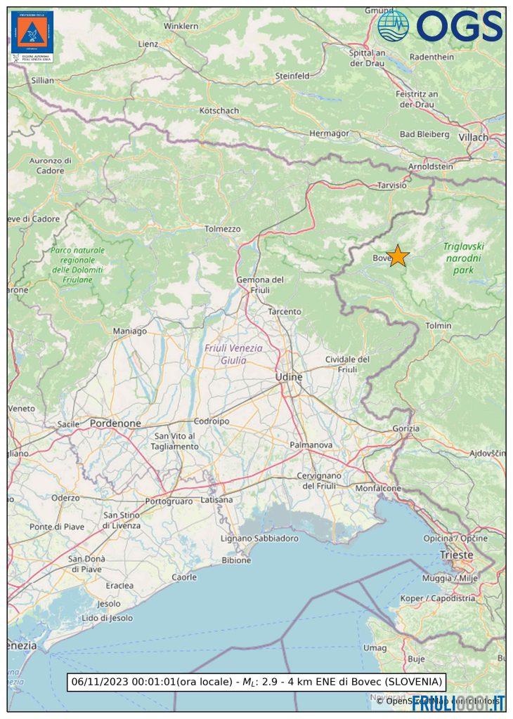 Due scosse di terremoto nella notte tra domenica e lunedì sono state registrate al confine con la Slovenia, e sono state nitidamente avvertite anche in Friuli. La prima, alle 00.01.00 di lunedì, l’Istituto nazionale di geofisica la colloca nei dintorni di Bovec, a una profondità di 7 chilometri, e con magnitudo 2.8.