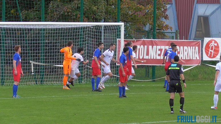 Nel secondo tempo i carnici provano a ripartire in attacco ma sugli sviluppi di un contropiede avversario Fabris è costretto al fallo tattico su Hoti lanciato a rete, beccandosi il giallo. La partita inizia ad innervosirsi e il Tolmezzo non riesce a trovare il pertugio giusto per il pareggio. Intorno al quarto d’ora ci prova Motta, ma il suo tiro a giro da dentro area termina alto e al 18’ un cross dalla sinistra di Amadio (al rientro dopo cinque partite, guarito dall’infortunio) con Gregorutti che di testa manda a fondo campo.