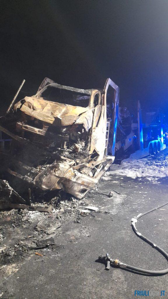 Dai primi accertamenti sembra che la bisarca abbia tamponato l’autovettura e l’autoarticolato poi la bisarca e l’autovettura si sono incendiate. Una persona (occupante del veicolo leggero) è deceduta. Sul posto i vigili del fuoco del comando di Udine che stanno intervenendo con le squadre dei distaccamenti di Cervignano e Latisana supportate dalle autobotti della sede centrale del distaccamento di Lignano il funzionario di guardia e un’ulteriore squadra giunta dal distaccamento di Portogruaro.