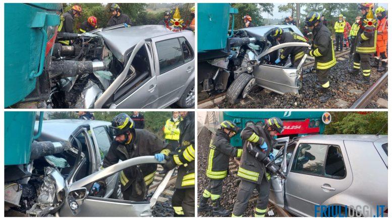 Per cause in corso di accertamento una vettura è stata travolta da un treno. Nell’impatto la macchina è stata trascinata per circa 10 metri. L’impatto è stato molto violento.