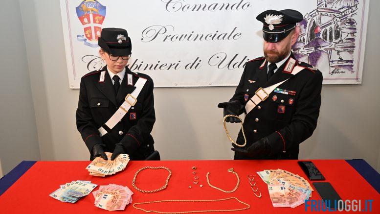 I carabinieri hanno recuperato la refurtiva: 640 euro in contanti e vari monili in oro, del valore stimato intorno ai 30mila euro. Il denaro e i gioielli sono stati restituiti alla vittima, mentre 875 euro trovati in possesso dei due arrestati sono stati sequestrati perché ritenuti frutto di altre truffe commesse in precedenza. L’uomo è stato condotto alla Casa Circondariale di Udine, mentre la donna al carcere femminile di Trieste. Entrambi sono ora a disposizione dell’Autorità Giudiziaria.