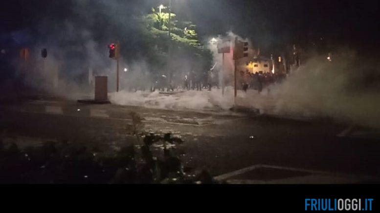 Gli scontri con la polizia in Piazza Primo Maggio a Udine.