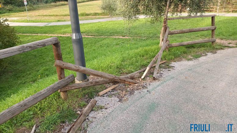 Le immagini parlano da sole: a Tavagnacco, alcuni vandali si sono scatenati, distruggendo parapetti e recinzioni in legno lungo la pista dedicata alle biciclette.