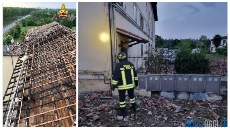 Il violento maltempo che nella notte si è abbattuto in Friuli ha creato ingenti danni anche a Torviscosa dove i forti venti e le intense piogge, hanno scoperchiato il tetto una palazzina di cinque piani.