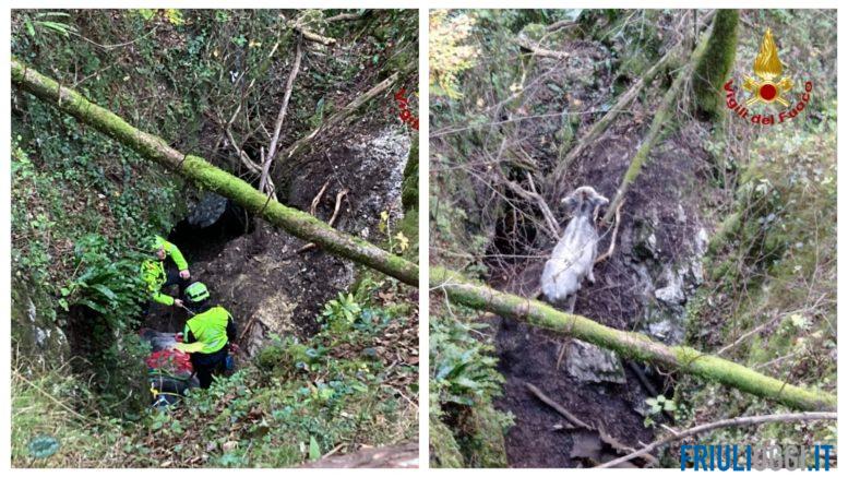 La vitellina che era caduta in una forra in località Riuc, a Moggio Udinese.