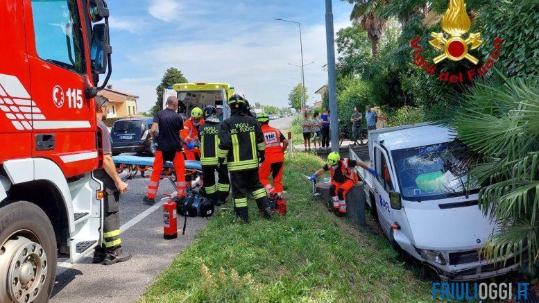 Incidente a Zoppola, un furgone esce di strada, il conducente ferito è rimasto incastrato nel mezzo