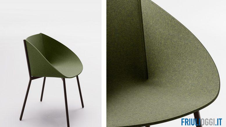 La poltroncina disegnata da Alessandro Stabile è un vero e proprio inno alla sostenibilità a 360°: dalle materie che la compongono fino ai procedimenti produttivi necessari alla sua realizzazione, senza dimenticare l’eventuale futura dismissione.