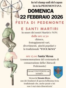 Domenica 22 febbraio 2026 la comunità di Pedemonte, frazione di Aviano, si ritroverà per la tradizionale Festa di Pedemonte e dei Santi Martiri, appuntamento promosso dalla Pro Loco Aviano APS che unisce devozione religiosa e momenti di festa popolare.
