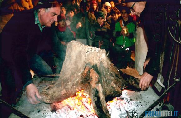 Questo perché, una volta, le braccia erano sempre poche e, l’arrivo di un nuovo nato, era importante: una volta cresciuto un po’, avrebbe subito aiutato lavorando. “Terminata questa parte rituale, il nadalin veniva appoggiato sul fogolâr e poi, prima di andare alla messa di mezzanotte, il tronco veniva forato, per farlo bruciare meglio, e acceso in più punti”.