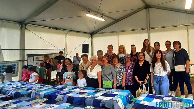 Una coperta realizzata con tecniche diverse come il ricamo a punto croce, l’uncinetto e il patchwork, le tonalità sono quelle dell’azzurro-blu per richiamare “I Sapori dell’acqua”, la due giorni tenutasi a Fontanafredda l’8 e 9 giugno alla riscoperta delle risorgive del territorio, che danno il toponimo al paese.