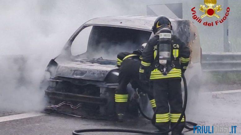 Un furgone è andato a fuoco sulla A28.