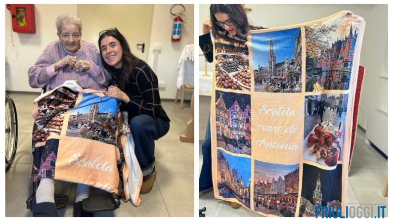 La richiesta è stata raccolta da Marta, una giovane “nipote” che ha voluto rendere il regalo ancora più speciale. Ha fatto realizzare un plaid personalizzato con motivi tipici belgi, unendo così il presente di Antonia con i suoi preziosi ricordi. Quando ha scartato il regalo, le sue mani hanno accarezzato il tessuto morbido decorato con piccoli motivi che richiamavano i paesaggi dove ha vissuto. “È come tornare un po’ a casa” ha sussurrato commossa, stringendo la coperta.