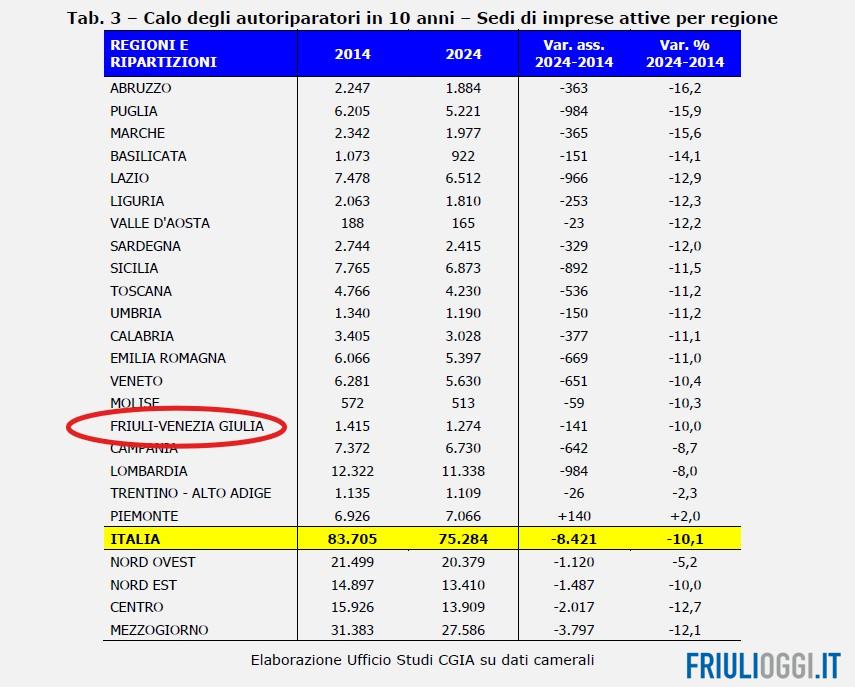Il quadro che emerge è quello di una trasformazione strutturale del comparto. Anche in Friuli Venezia Giulia, dove le auto aumentano ma le saracinesche delle officine si abbassano, il rischio è la perdita di un tessuto artigiano che per decenni ha rappresentato un presidio economico e sociale nei quartieri e nei piccoli centri.