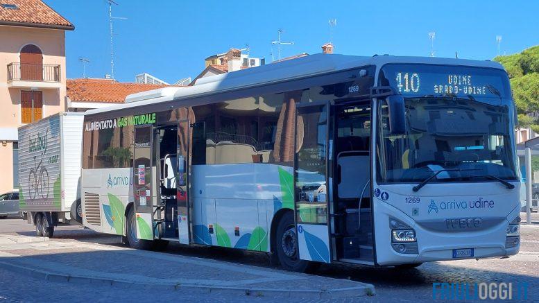 Udine Autostazione, Palmanova (viale della Stazione), Aquileia (parcheggio bus), Grado (autostazione), e prevede 2 coppie di corse al giorno, secondo il calendario di attivazione, con i seguenti orari: