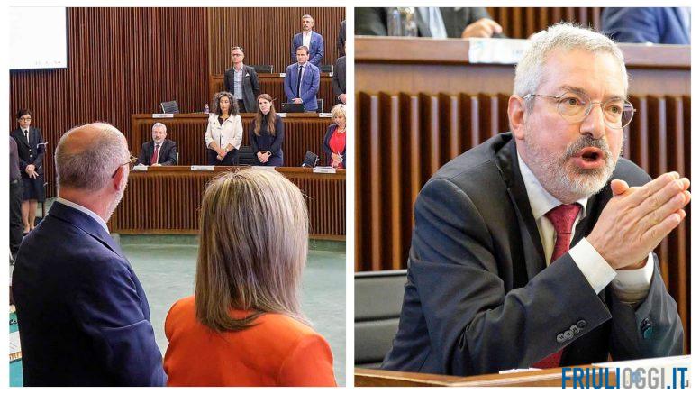 “Siamo in un luogo della politica, non a un funerale di Stato, e l’unico strumento che avevo per manifestare il mio dissenso dal celebrare la figura di Berlusconi era quello di restare seduto“. Così il consigliere di Open Fvg, Furio Honsell, replicando “per fatto personale” al governatore Massimiliano Fedriga, ha motivato in aula la sua scelta di questa mattina, durante il minuto di raccoglimento in memoria di Silvio Berlusconi.