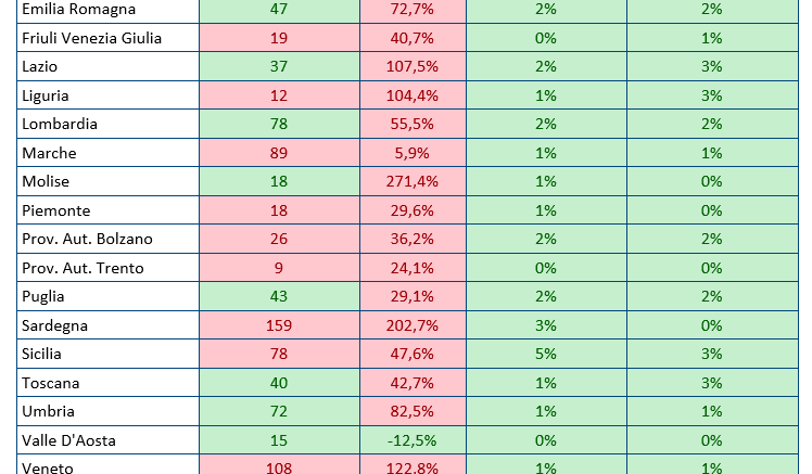 In Friuli Venezia Giulia nella settimana 7-13 luglio si evidenzia una performance in peggioramento per i casi attualmente positivi per 100.000 abitanti e si registra un aumento dei nuovi casi rispetto alla settimana precedente. Sotto soglia di saturazione i posti letto in area medica e terapia intensiva occupati da pazienti COVID-19. La percentuale di popolazione con ciclo completo è pari al 44,4% a cui aggiungere un ulteriore 13,8% solo con prima dose. La percentuale di popolazione over 80 con ciclo completo è pari al 90,1% a cui aggiungere un ulteriore 2,5% solo con prima dose. La percentuale di popolazione 70-79 anni con ciclo completo è pari al 58,9% a cui aggiungere un ulteriore 22,8% solo con prima dose. La percentuale di popolazione 60-69 anni con ciclo completo è pari al 51,3% a cui aggiungere un ulteriore 23,6% solo con prima dose. La percentuale di popolazione over 60 che non ha ricevuto nessuna dose di vaccino è pari a 18% (media Italia 12,4%).
