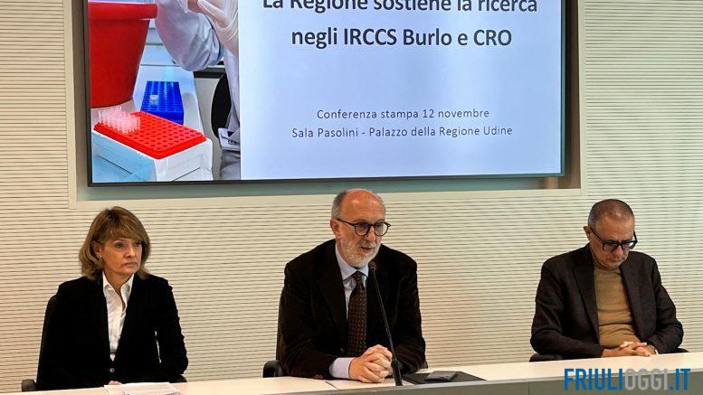 La Regione sosterrà il piano di stabilizzazioni a tempo indeterminato dei ricercatori che operano nei due Irccs del Friuli Venezia Giulia, il Burlo Garofolo di Trieste e il Cro di Aviano. I dettagli della misura sono stati illustrati mercoledì 12 novembre a Udine nel corso di una conferenza stampa alla quale hanno partecipato anche i direttori generali delle due strutture, Francesca Tosolini e Giuseppe Tonutti, nonché i direttori scientifici Massimo Zeviani e Gustavo Baldassarre.