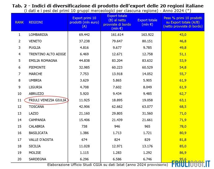 Seguono la provincia di Udine con oltre 630 milioni, Pordenone con quasi 550 milioni e Trieste, più staccata, sotto i 130 milioni. Per un’economia regionale fortemente proiettata verso l’export, un aumento delle barriere commerciali può rappresentare un freno alla crescita.
