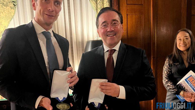 Il governatore del Friuli Venezia Giulia Massimiliano Fedriga ieri sera a New York è stato premiato, assieme al ministro degli esteri spagnolo José Manuel Albares Bueno, della Foreign Policy Association medal, riconoscimento assegnato dalla Foreign Policy Association a personalità che si sono distinte in particolare per l’impegno profuso nel rafforzamento delle relazioni internazionali.