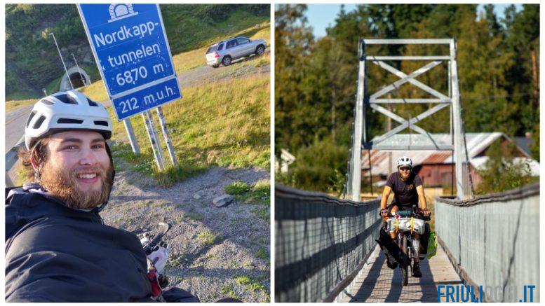 Inizia così l’avventura del giovane friulano. “I primi giorni sono stati particolarmente impegnativi, non lo nego, tenevo una media di una settantina di chilometri al giorno, ho percorso il Brennero, l’Austria, poi mi sono fermato a far visita ai miei parenti in Germania, poi ancora Francia, Belgio, Polonia, Olanda dove studia mia sorella minore alla quale ho voluto fare un saluto, poi ancora Danimarca, Svezia, Finlandia, fino ad arrivare, dopo due mesi e mezzo dalla partenza, in Norvegia “.