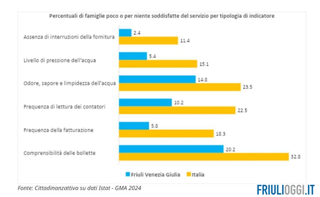 Di fatto, i residenti del Fvg sono più soddisfatti del servizio idrico rispetto alla media italiana: