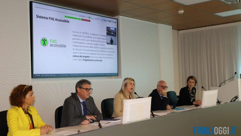 E’ stato presentato oggi “Fvg Accessibile”, il Sistema integrato dell’accessibilità della Regione. Le soluzioni tecnologiche illustrate per la prima volta quest’oggi a supporto del sistema “Fvg Accessibile” sono: l’applicativo PebaFvg, per cittadini, professionisti e pubbliche amministrazioni; il portale “Fvg Accessibile” che è dedicato a professionisti, Regione, Enti locali e cittadini; il sistema “Segnala la barriera” per i cittadini, ed “Eagle Fvg”. La presentazione si è svolta questa mattina nella sede di Udine della Regione con l’assessore alle Infrastrutture del Friuli Venezia Giulia, Cristina Amirante, , insieme all’assessore regionale ai Sistemi informativi, Sebastiano Callari.