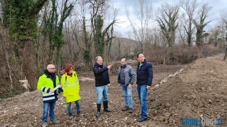 Il sopralluogo per fare il punto sullo stato dei lavori agli argini dello Judrio dopo l’esondazione di due settimane fa.