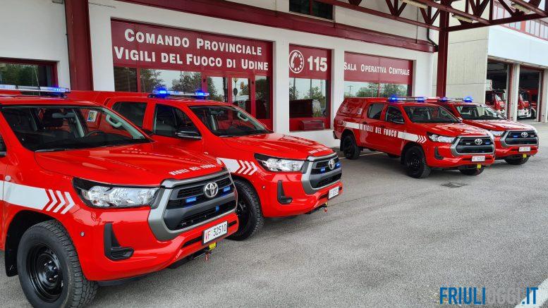 Quattro nuovi mezzi fuoristrada, acquistati con un contributo della Regione, andranno ai distaccamenti di Rigolato, Lignano, San Daniele del Friuli e Cervignano dell’Associazione dei vigili del fuoco volontari del Friuli Venezia Giulia