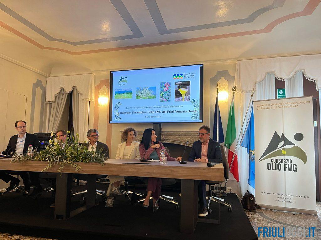 “Sua eccellenza l’olio Evo del Friuli Venezia Giulia”, il convegno organizzato dal Consorzio Produttori Olio EVO FVG e dalla Comunità Collinare, si è svolto ieri mattina con grande successo di partecipazione di pubblico e di interesse dimostrato per l’argomento, presso il Castello di Colloredo di Monte Albano. A fare gli onori di casa è stato il presidente della Comunità Collinare del Friuli, Luigino Bottoni, che ha dato il benvenuto ai relatori e al pubblico, evidenziando il grande valore che l’olio EVO prodotto in regione ha apportato alle eccellenze della gastronomia locale. Durante l’evento, sono stati approfonditi i temi legati alla qualità, al benessere e alla competitività del settore olivicolo della regione.