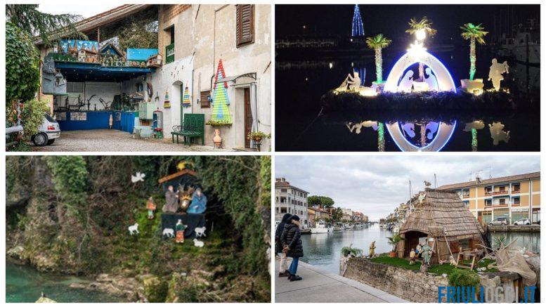 sono: Paluzza – Presepe in vetrina; Prato Carnico, Pesariis – Natale a Casa Bruseschi; Rigolato – Presepe 2025 “Il non finito” di Bruno Screm; Clauzetto – Il Presepe sull’albero; Clauzetto, Pradis – Presepe vivente alle Grotte di Pradis; Sesto al Reghena – Il Presepio di Mosaico 2025 all’Abbazia di Sesto al Reghena; Codroipo, Rivolto – Presepe della Chiesa di San Michele Arcangelo; Povoletto, Primulacco – Il Presepe di Primulacco; Pozzuolo del Friuli, Sammardenchia – Presepe della Chiesa di San Leonardo; Udine – Rassegna presepi al Museo Etnografico del Friuli (di API APS); Udine, Paderno – Presepe della Chiesa di Sant’Andrea Apostolo; Varmo, Canussio – Rassegna presepi; Magnano in Riviera – Presepe di Daniele Revelant (Chiesa SS. Trinità); Prepotto, Castelmonte – Presepe della Cripta e mostra nella Sala del Rosario; Latisana – Rassegna presepi in Galleria; Latisanotta – Il grande Presepe di Via Trieste; Muzzana del Turgnano – Presepe della Chiesa di San Vitale Martire; Muzzana del Turgnano – Presepe storico religioso nel Parco degli Orbi; Muzzana del Turgnano – Presepe del canto “Oggi è nato”; San Vito al Torre, Nogaredo al Torre – Rassegna presepi a Villa Gorgo; Gorizia – Il Presepe lagunare di Grado ai Giardini pubblici; Gorizia – Rassegna presepi in San Rocco; Trieste – Presepe della Chiesa di Nostra Signora di Lourdes; Trieste – Rassegna presepi nel Borgo di Servola.
