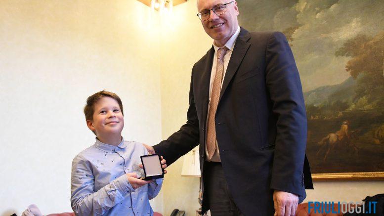 Un risultato notevole per Evan, bambino prodigio di Basovizza e allievo della scuola di musica Glasbena matica, che ha ricevuto ieri a Trieste il sigillo dell’Assemblea legislativa Fvg. Ad accoglierlo nel palazzo del Consiglio regionale, il presidente Mauro Bordin e il consigliere Marko Pisani (Ssk) che hanno voluto premiare l’impegno del giovanissimo pianista, complimentandosi anche con i genitori e con presidente e direttore della Glasbena matica, Igor Svab e Manuel Figheli.