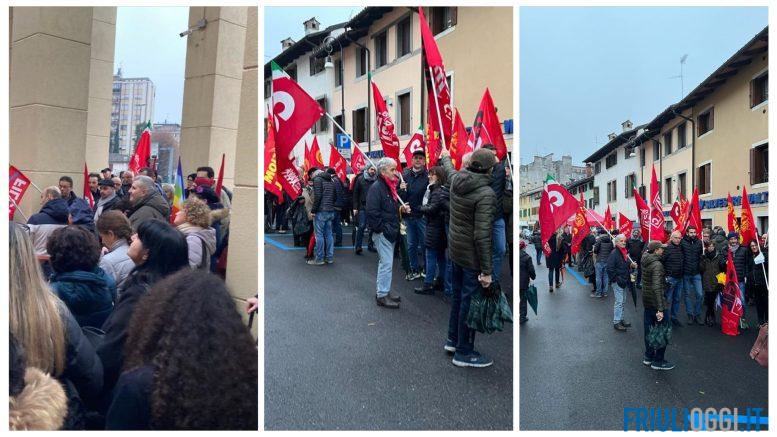 Presidi sotto la pioggia per lavoratori e pensionati della Cgil Friuli Venezia Giulia, scesi insieme in piazza a Udine, Pordenone e Trieste per protestare contro la Finanziaria. Le adesioni allo sciopero generale, proclamato solo dalla Cgil, si attestano tra il 25 e il 30% nelle grandi fabbriche della regione, con punte del 40-50% in alcune realtà come la Faber di Cividale (che ha scioperato ieri) e la Modine di Pocenia, mentre sono più basse nei comparti pubblici.