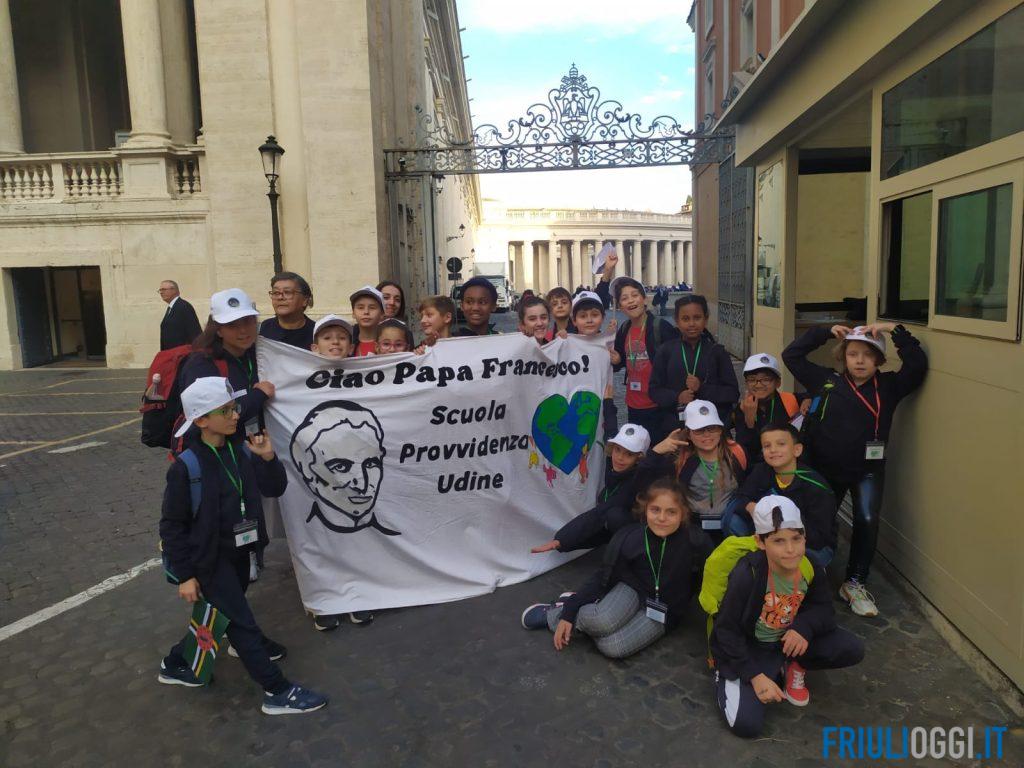 Tra i circa settemila bambini da tutto il mondo in pellegrinaggio a Roma per incontrare Papa Francesco, c’era anche una cinquantina di piccoli studenti del Friuli: una rappresentanza composta dai ragazzini dell’Istituto Bearzi e del Collegio della Provvidenza che ieri si sono alzati all’alba per vivere l’emozione del viaggio e dell’incontro con il Santo Padre.