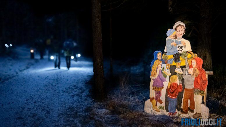 Puntuali alle ore 16, le lanterne si illumineranno lungo i 2,7 km del facile sentiero privo di dislivello e adatto a tutti. Immersi nella meraviglia dei boschi di Valbruna potrete imbattervi in diverse tappe scandite dalle opere lignee degli artigiani locali che attraverso la loro manualità hanno rappresentato il periodo dell’Avvento. Quest’anno ad attendervi anche una speciale cassapanca, un imponente presepe ligneo, dei simpaticissimi alpaca e le melodie dei suonatori di corno. Dopo aver camminato, per chi vuole, in solitaria nel bosco, ecco che all’orizzonte compariranno le luci di alcune caratteristiche casette di legno: un villaggio d’Avvento pronto a regalare sorprese.