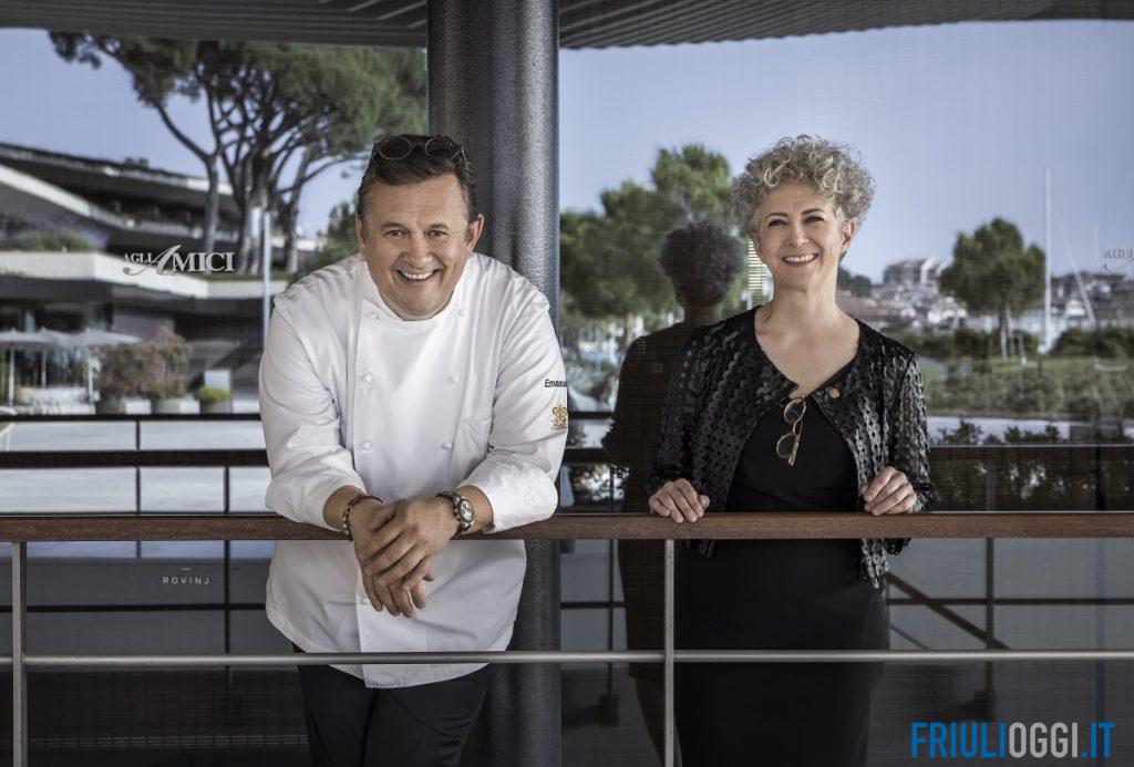 A Rovigno, i fratelli Scarello – lo chef Emanuele e la sorella sommelier, che da anni gestisce l’accoglienza – hanno portato la loro personalissima filosofia di ristorazione, trasformando l’attività di famiglia in ciò che è oggi il ristorante ‘Agli Amici 1887’ di Godia. E cioè un locale bi-stellato dove la cucina raffinata e di ricerca va di pari passo con l’attenzione rivolta agli ospiti.