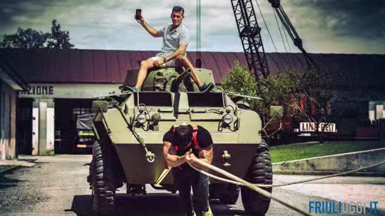 La performance sarà mozzafiato: Alex Camera, l’atleta degli sport estremi e pluripremiato detentore di numerosi record, utilizzerà la forza delle sue gambe e delle sue braccia per trainare un imponente autoblindo americano M8 Greyhound, con un peso di ben 8 tonnellate. Ciò che rende questa esibizione ancora più incredibile è che mentre il blindato sarà in movimento, Igor Cassina rimarrà in posizione verticale sulla parte superiore del veicolo.