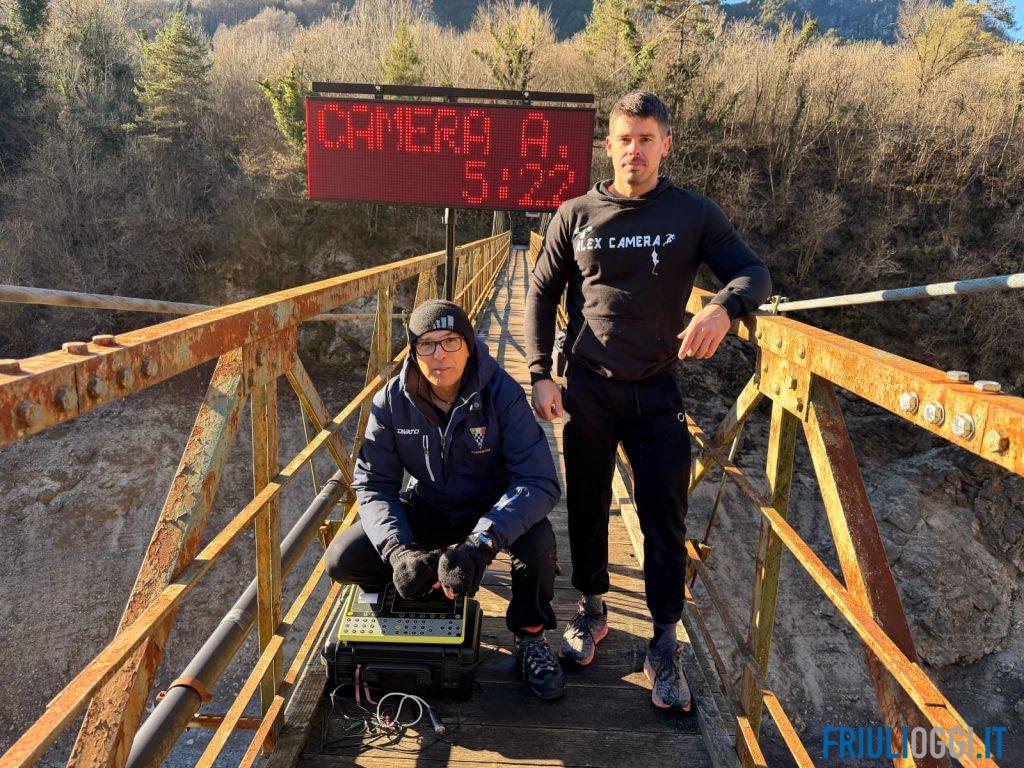 La performance è stata validata dai cronometristi abilitati, assistita da due Vigili del Fuoco per motivi di sicurezza e verificata da un perito che ha certificato altitudine e distanza. Gli addetti ai lavori presenti hanno definito la prestazione adrenalinica, inserita in uno scenario naturale mozzafiato, coerente con le caratteristiche delle esibizioni estreme che da sempre contraddistinguono Alex Camera.
