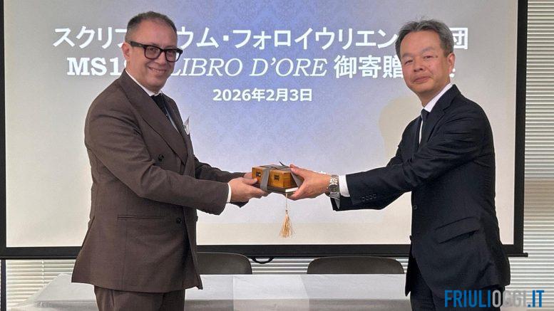 L’arte amanuense dello Scriptorium Foroiuliense varca i confini nazionali per approdare nelle più prestigiose istituzioni culturali del Giappone. Tra il 3 e il 4 febbraio, una delegazione della Fondazione guidata dal presidente Roberto Giurano ha compiuto una missione istituzionale a Tokyo che, grazie al coordinamento dell’Ambasciata d’Italia, ha permesso di inserire alcuni capolavori dell’arte libraria italiana nei templi della cultura e della diplomazia nipponica.
