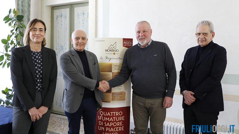 La convenzione che sancisce la collaborazione tra Consorzio Montasio e ateneo è stata presentata oggi a Palazzo Florio e a firmarla sono stati il presidente del Consorzio, Valentino Pivetta, e il capo dipartimento di Scienze Agroalimentari dell’Università di Udine, Edi Piasentier. Intervenuti, inoltre, la professoressa Nadia Innocente, coordinatore scientifico del progetto e docente dell’Università di Udine e Renato Romanzin, direttore del Consorzio Montasio.