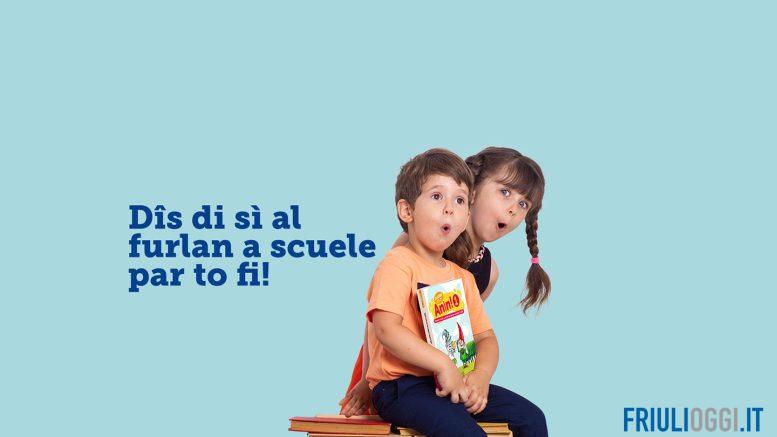 In Friuli, tutti i bambini hanno l’opportunità di studiare la lingua friulana a scuola. Infatti, al momento dell’iscrizione alla scuola dell’infanzia, primaria e secondaria di primo grado (entro il 30 gennaio), è possibile scegliere l’insegnamento del friulano per tutta la durata del ciclo scolastico: si tratta di almeno 30 ore all’anno, secondo quella che a livello europeo è riconosciuta come la metodologia didattica più efficace e all’avanguardia – il CLIL, Insegnamento Integrato di Lingua e Contenuto – e senza sottrarre ore ad altre materie. La legge prevede infatti che sia inserito nel 20% del curriculum individuato dalle scuole in autonomia. La scelta viene fatta al momento dell’iscrizione sul portale del MIUR https://www.istruzione.it/iscrizionionline/ ma è possibile rivolgersi anche alla segreteria della scuola.