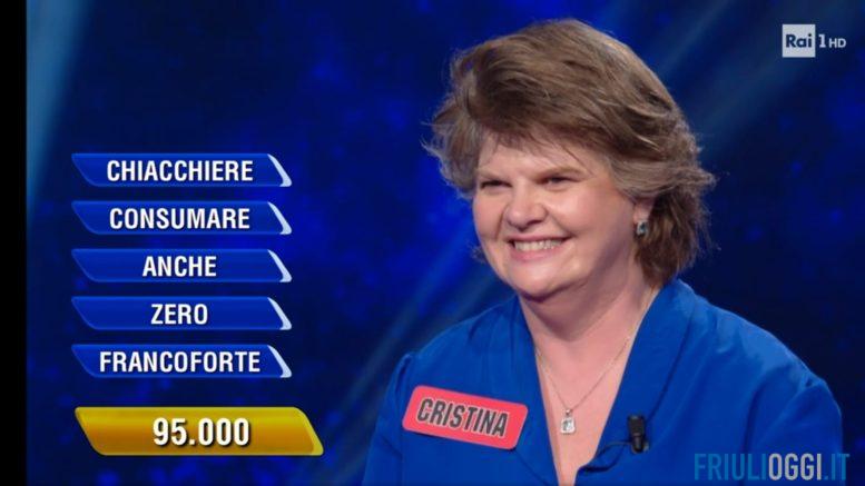 Colpo grosso di Cristina Novelli, 52enne di Martignacco, che al gioco di Rai1 l’Eredità vince la bella cifra di 95mila euro. Cristina, che lavora come impiegata amministrativa all’Università di Udine, ha sbancato il gioco condotto da Flavio Insinna centrando la parola finale.