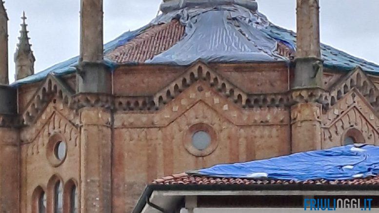 Capita nelle chiese di Lestizza, di Pozzuolo del Friuli, e pure nel Duomo di Mortegliano, paese simbolo della grandinata che ha sconvolto il territorio. Qui infatti, i teloni posizionati al tempo sono stati spostati dalle raffiche di vento: l’edificio sacro, al cui interno si trova tra l’altro la Pala del Martini, un’opera preziosa risalente alla fine del 1400, è ora soggetto ad allagamenti e infiltrazioni che minano anche gli affreschi.