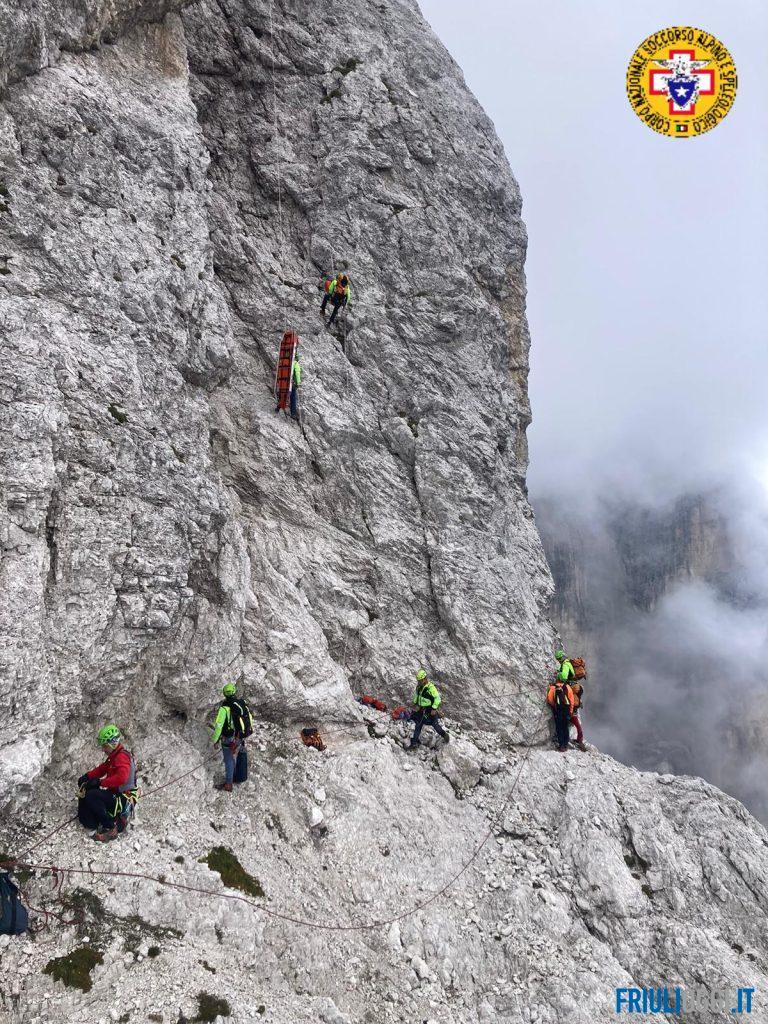 Spettacolare esercitazione del Soccorso Alpino sulle vertiginose pareti delle Alpi Giulie, con un modulo di formazione che, non a caso, si chiama “Grandi pareti” ed è uno dei passaggi nella formazione dei tecnici.