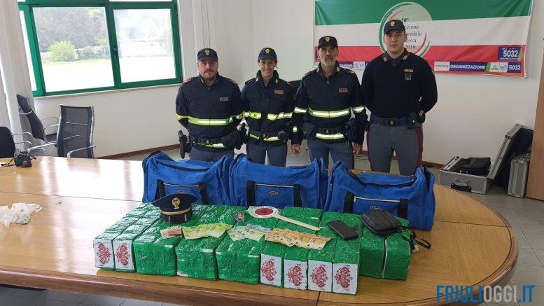Le ulteriori verifiche presso gli uffici della Polstrada di Palmanova e la Questura di Udine hanno permesso di accertare che si trattata di sostanza stupefacente del tipo “hashish” per un peso complessivo di 69 chili. La droga è stata quindi sequestrata e l’uomo arrestato. Sono in corso indagini per verificare la provenienza e la destinazione della sostanza visto il quantitativo importante che se immesso nel mercato avrebbe fruttato una somma ingente di denaro.