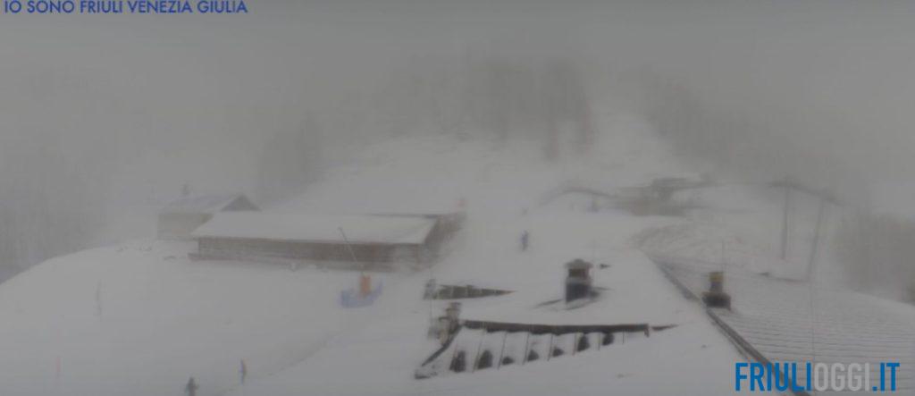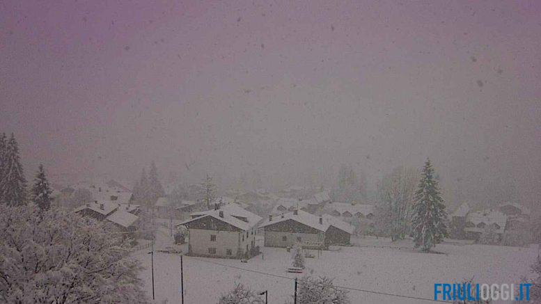 Nevicate vengono segnalate infatti nella zona di Forni di Sopra, così come lungo la regionale 355 della Val Degano, tra Rigolato e Sappada. I fiocchi cadono anche tra Forni di Sotto e il passo della Mauria, e in Val Cellina.